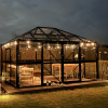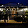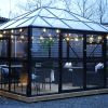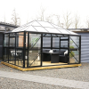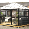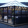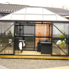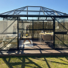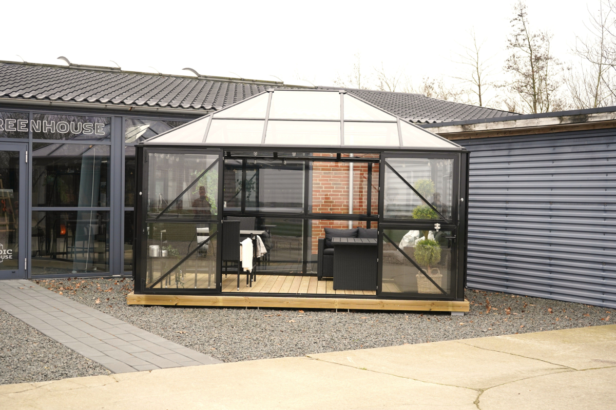 • Et drivhus til den kræsne haveejer. hvor alle aluprofiler er pulverlakeret sort.